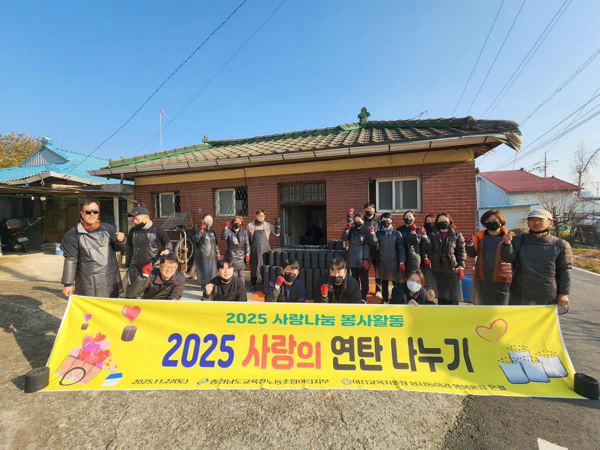 [충청25시] 아산교육지원청 봉사동아리 ‘행복울림 온결 ’은 11월 22일, 지역 내 취약계층의 따뜻한 겨울나기를 돕기 위해 ‘사랑의 연탄 나눔 봉사활동 ’을 실시했다고 밝혔다.