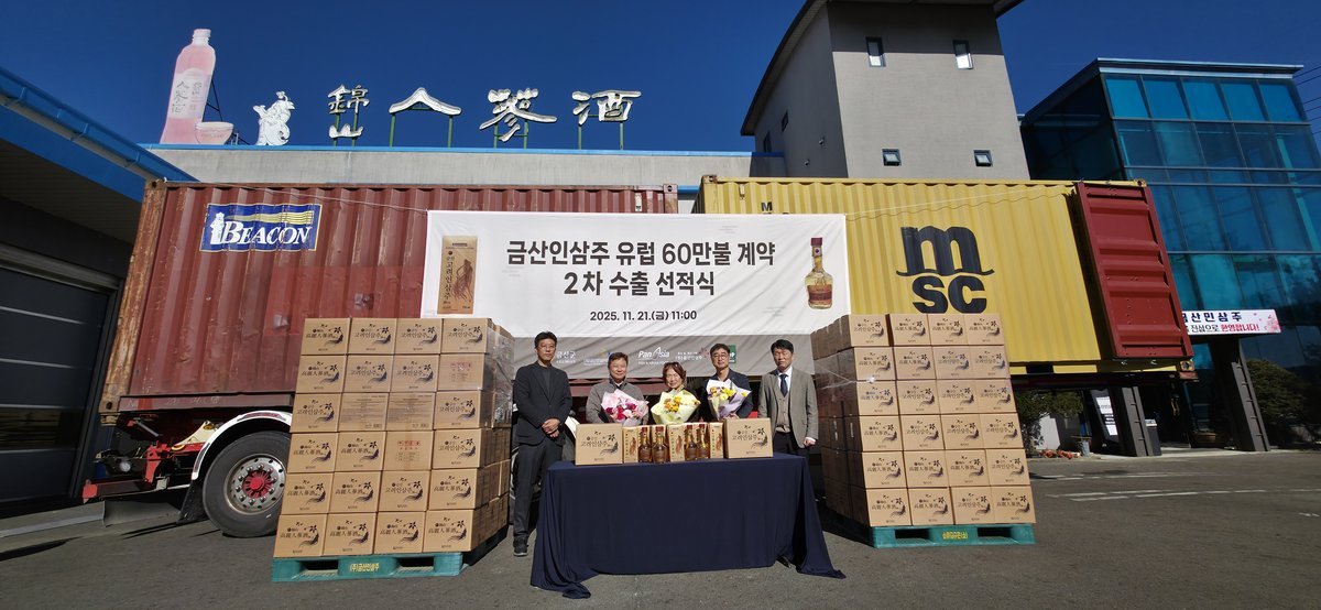 [충청25시] 금산군 금성면 소재 인삼주 제조업체 ‘금산인삼주’는 지난 21일 10만 달러 규모 인삼주를 선적하며 2차 오스트리아 수출길에 나섰다.
