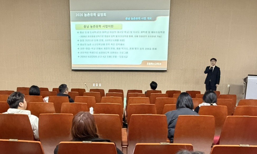 [충청25시] 충남교육청 은 26일, 충남교육청과학교육원 에서 농촌유학에 관심있는 학부모를 대상으로 ‘2026 충남 농촌유학 학부모 설명회 ’를 개최했다.