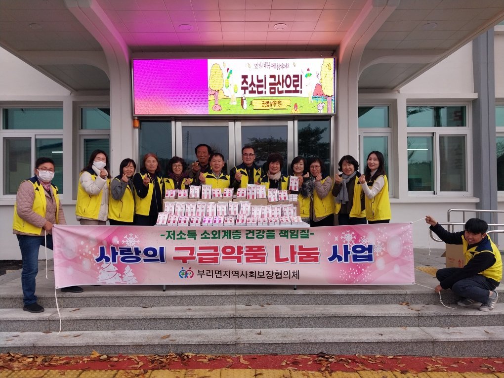 [충청25시] 금산군 부리면지역사회보장협의체는 지난 25일 독거노인 등 저소득층을 위해 사랑의 구급약품 전달에 나섰다.