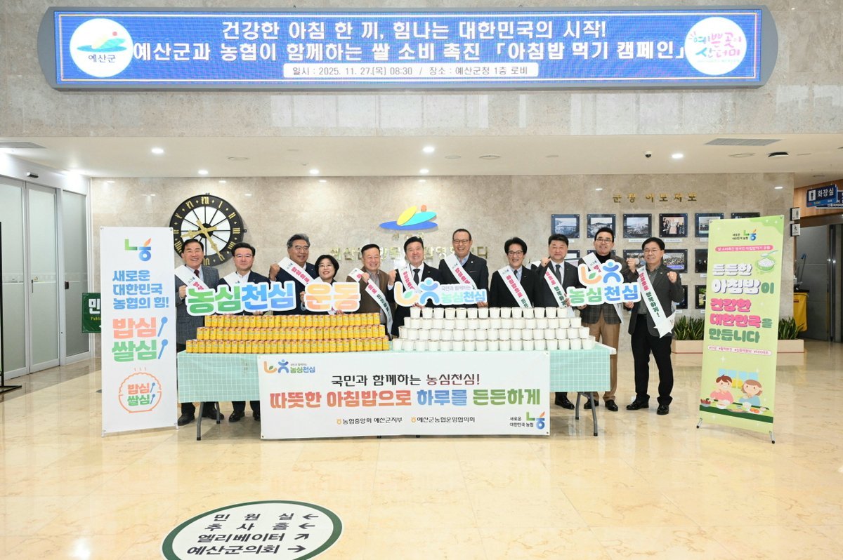 [충청25시] 예산군은 지난 11월 27일 농협중앙회 예산군지부와 함께 ‘쌀 소비촉진 범국민 아침밥 먹기 캠페인’을 성황리에 개최했다고 밝혔다.