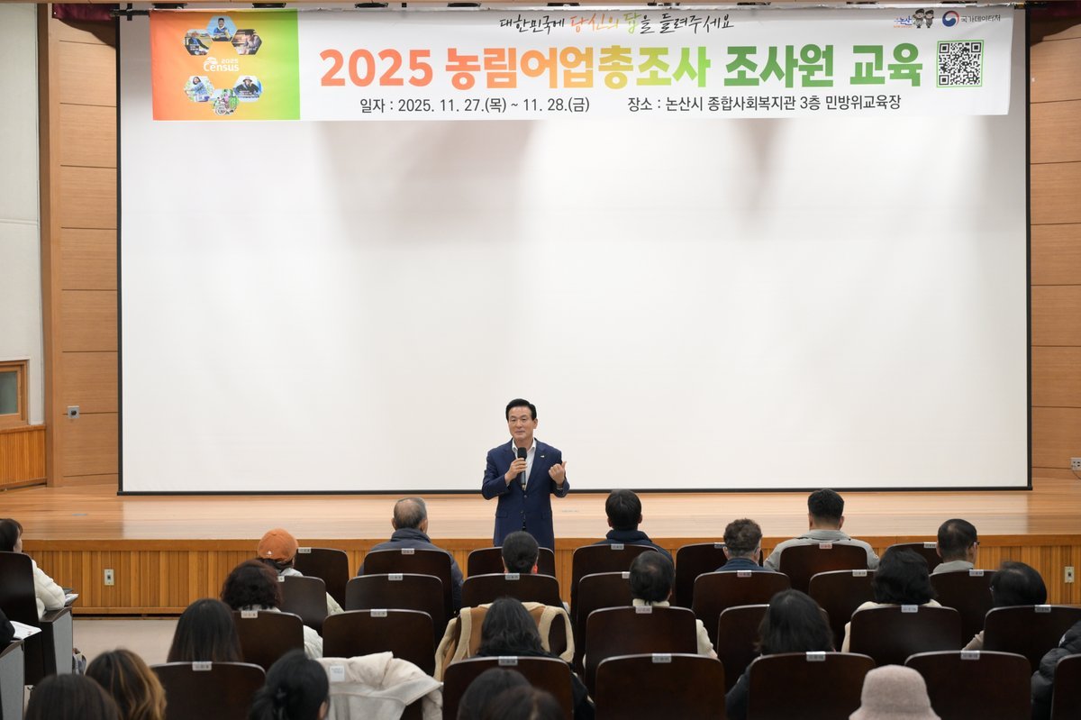 논산시는 11월 27일과 28일 이틀간 논산시종합사회복지관에서 조사원 115명이 참여한 가운데 ‘2025 농림어업총조사’조사원 교육을 실시했다.