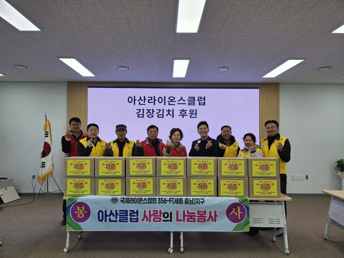 [충청25시] 아산라이온스클럽은 지난 1일 아산시 인주면 행복키움추진단에 김장김치를 전달하며 지역사회 나눔 활동에 동참했다.