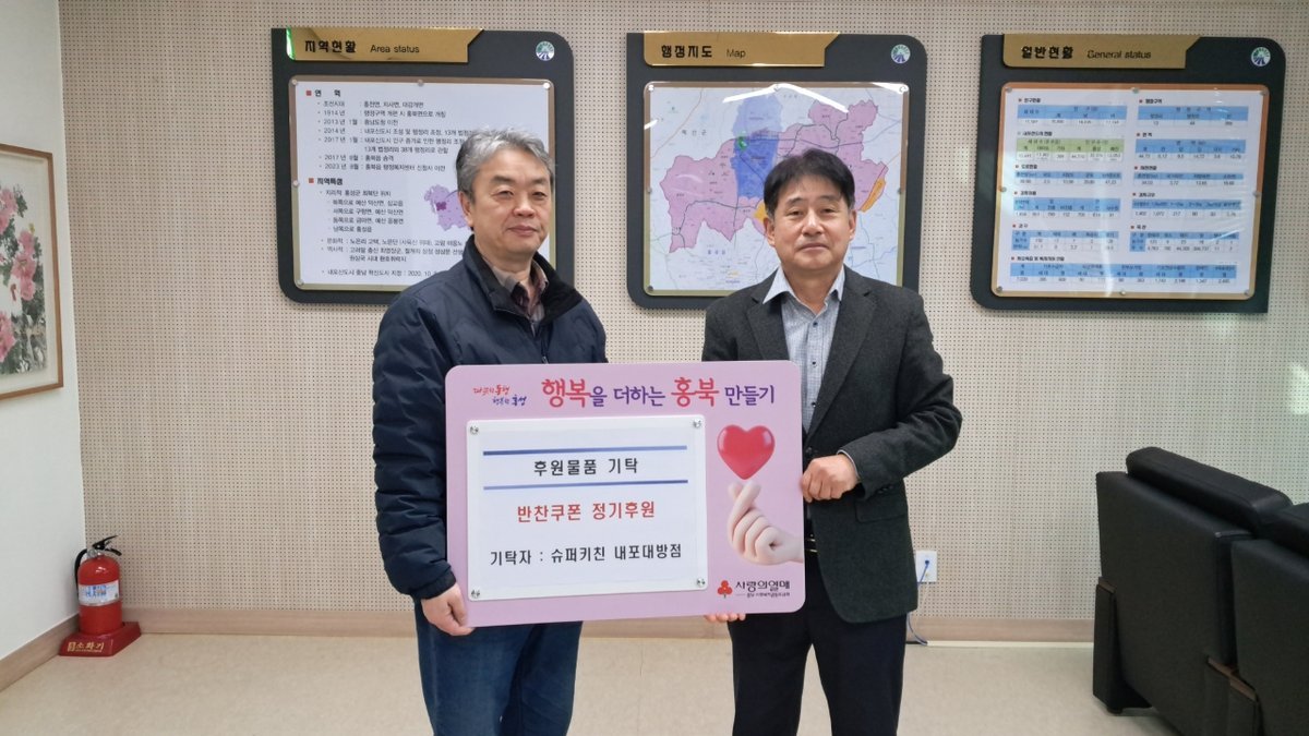 [충청25시] 홍성군 홍북읍은 지난 2일, 슈퍼키친 내포대방점이 관내 저소득층을 지원하기 위해 2만원 반찬쿠폰 120매를 기탁했다고 밝혔다.