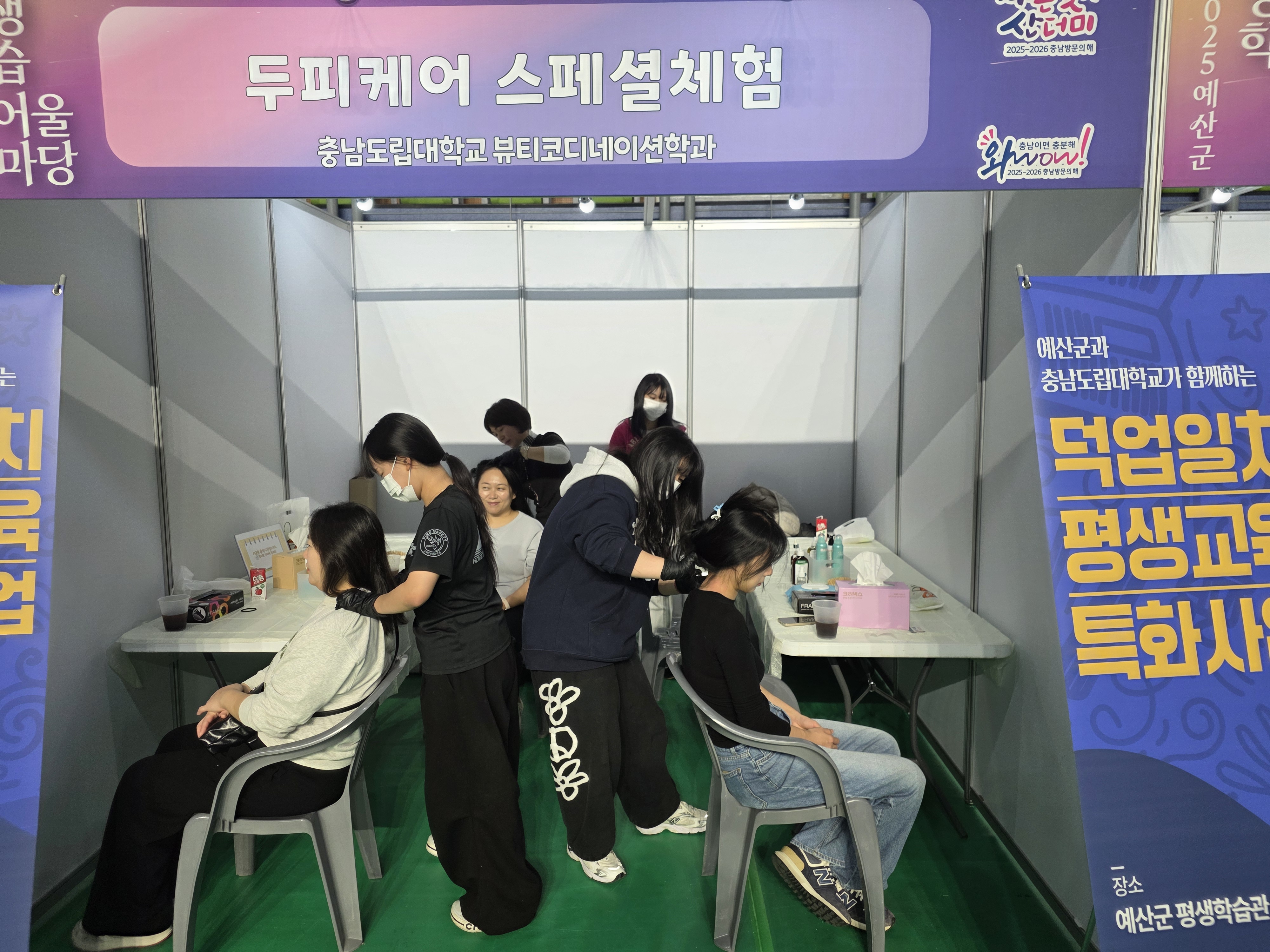 특히 뷰티코디네이션학과의 네일아트와 두피케어 프로그램은 전문 장비 경험과 피부·두피 상태 분석 서비스가 제공되면서 대기 줄이 생길 정도로 인기를 끌었다.