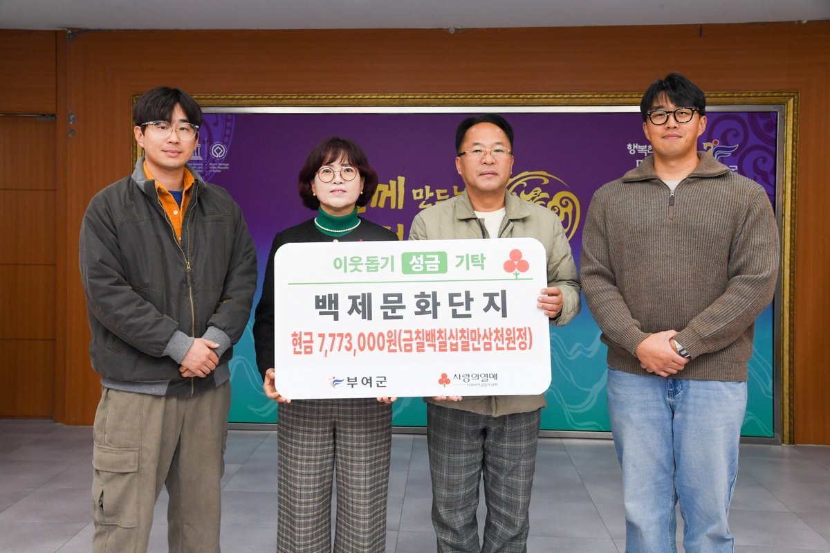 [충청25시] 부여군은 규암면 소재의 백제문화단지에서 이웃돕기 성금 777만 3천 원을 기탁했다고 8일 밝혔다.