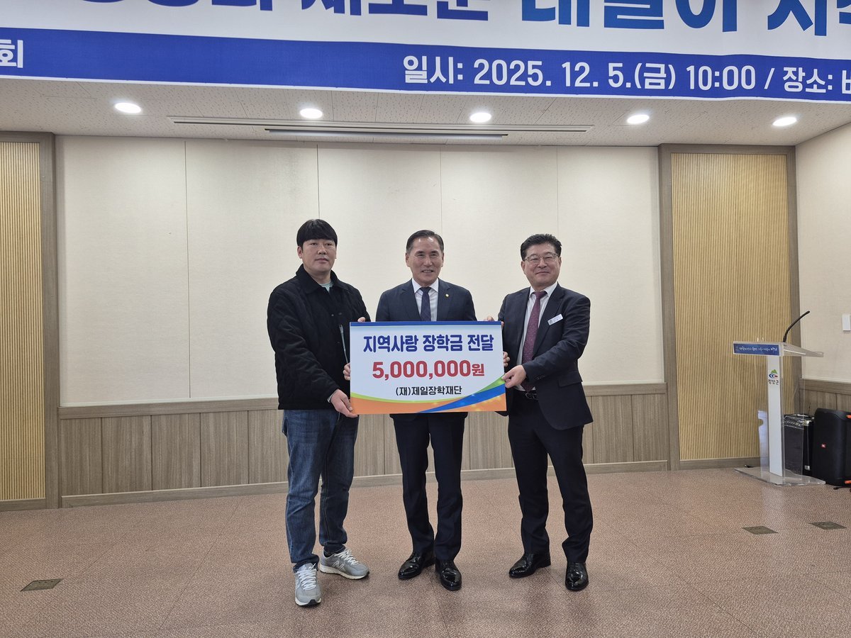 [충청25시] 재단법인 제일장학재단은 지난 5일 비봉면 주민자치센터에서 비봉면 지역 학생들을 위한 지역사랑장학금 500만 원을 기탁했다.