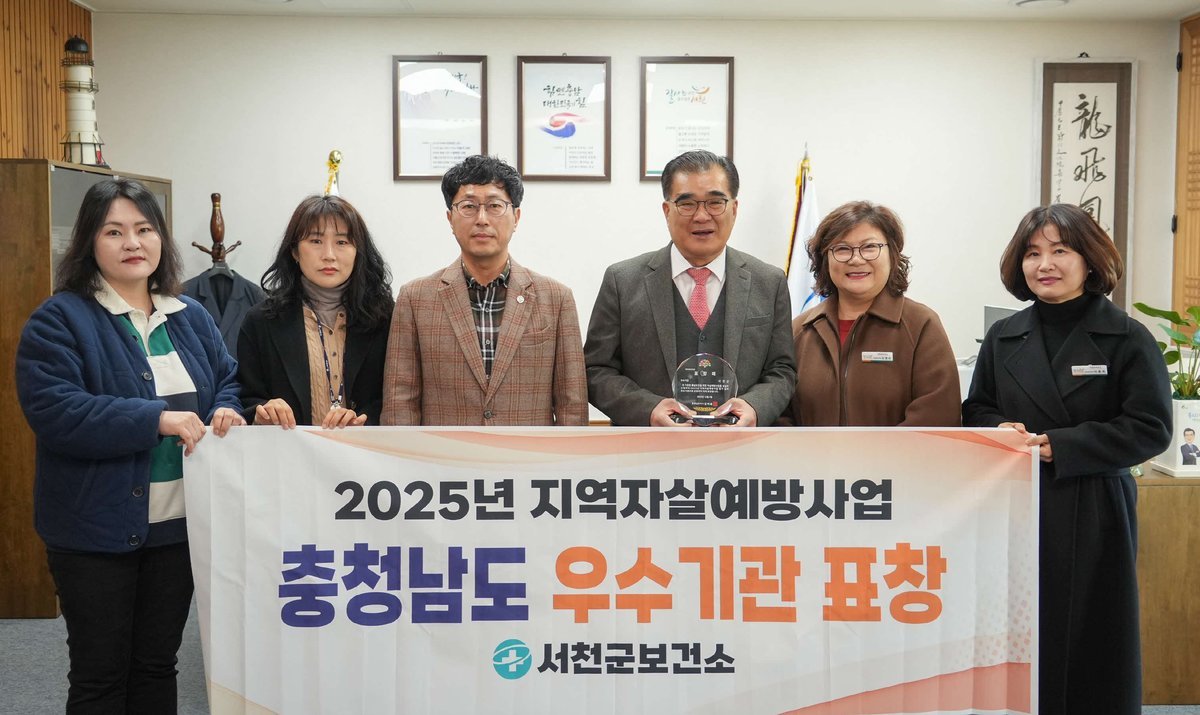[충청25시] 서천군은 지난 7일 ‘2025년 충청남도 지역자살예방사업 평가’에서 우수기관으로 선정돼 충청남도지사 표창을 받았다.