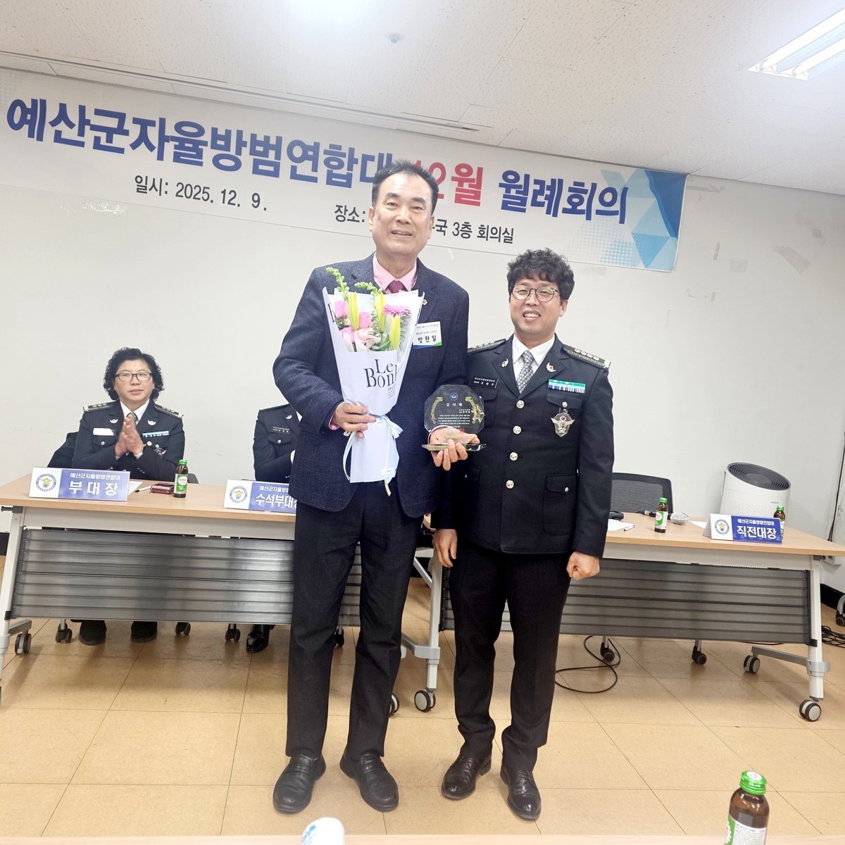 [충청25시] 방한일 충남도의원이 9일 예산군자율방범연합대의 발전과 지역 치안 강화에 기여한 공로로 예산군자율방범연합대장으로부터 감사패를 받았다.
