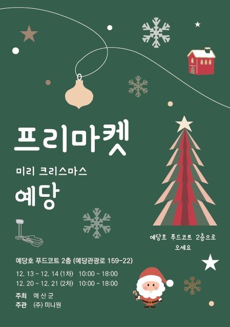 [충청25시] 예산군은 예당호 전망대에서 ‘미리 크리스마스 예당’프리마켓을 오는 13∼14일, 20∼21일 두 차례에 걸쳐 진행한다고 밝혔다.