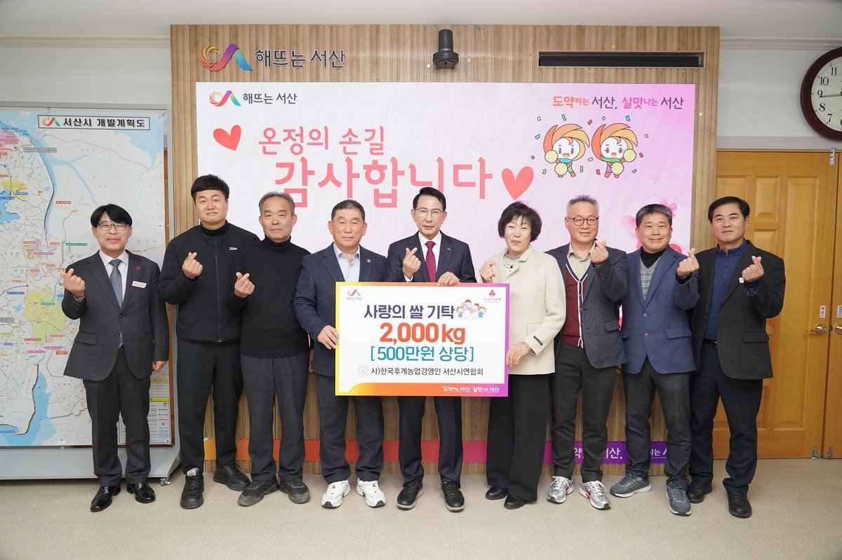 [충청25시] 충남 서산시 농업경영인회가 지난 10일 어려운 이웃을 돕기 위한 쌀 2,000㎏을 기탁했다.