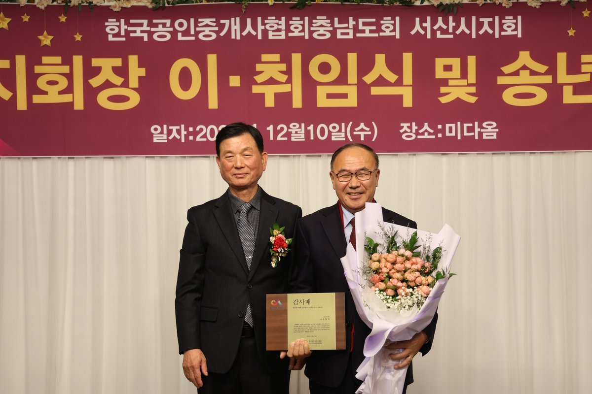 [충청25시] 서산시의회 조동식 의장이 지난 10일 ‘한국공인중개사협회 서산시지회 지회장 이·취임식 및 송년회’에서 한국공인중개사협회 서산시지회로부터 감사패를 받았다.