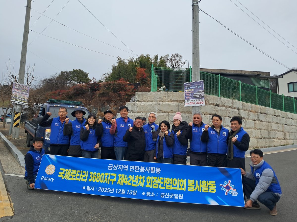 [충청25시] 국제로타리3680지구 42년차 회장단은 지난 13일 금산군 금산읍의 어려운 이웃을 위해 연탄나눔 봉사에 나섰다.