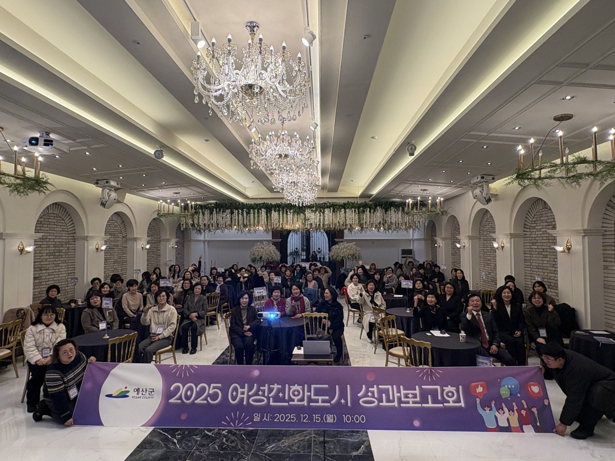 [충청25시] 예산군은 15일 ‘2025년 예산군 여성친화도시 성과보고회’를 개최하고 올 한 해 여성친화도시 조성을 위해 추진한 다양한 사업의 성과를 군민과 함께 공유했다.