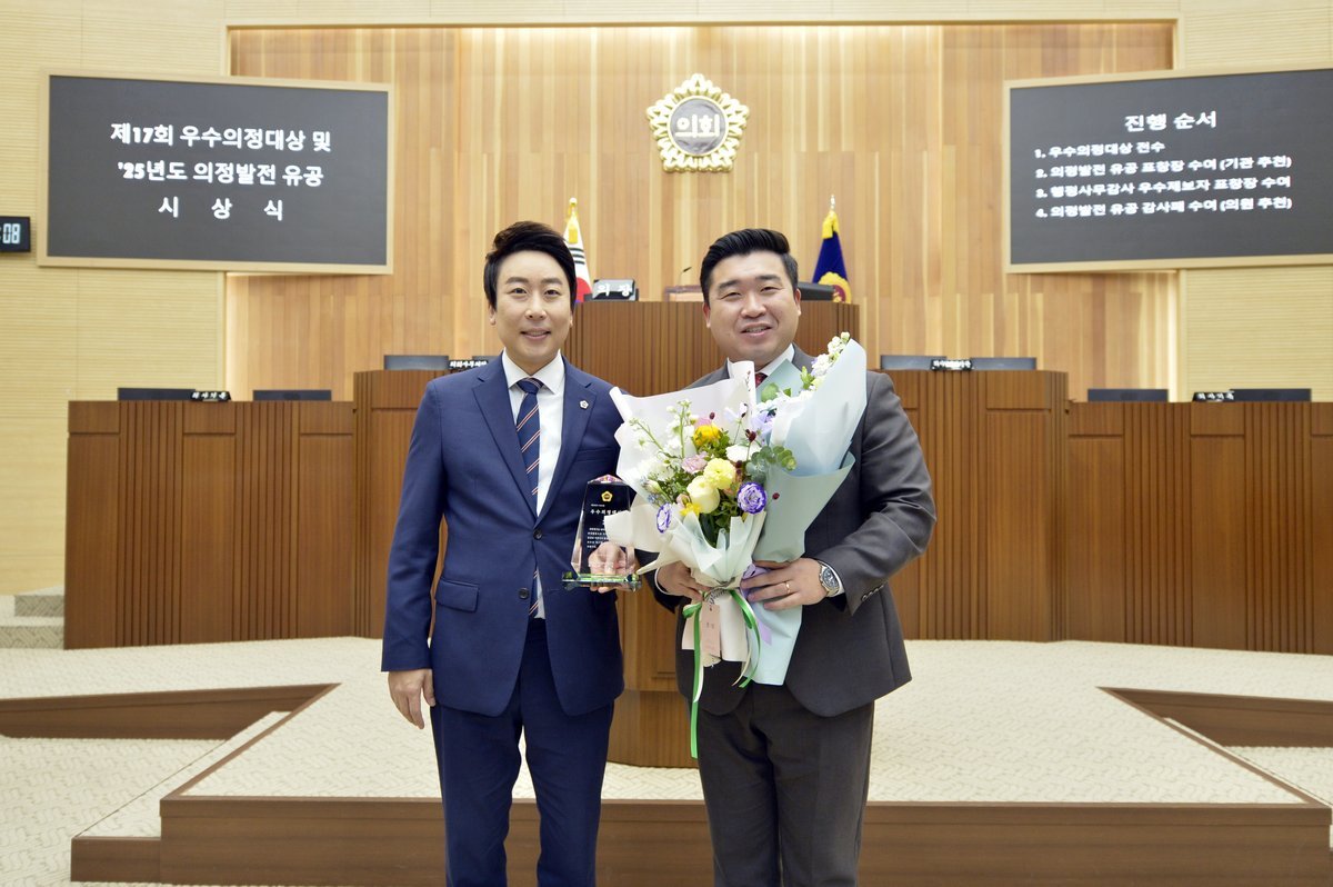 수상자는 임채성 의장을 비롯해 이순열, 이현정, 최원석, 홍나영 의원 등 총 5명으로 이들은 적극적인 입법 활동과 정책 대안 제시, 현장 중심 의정활동을 통해 시민의 삶의 질 향상과 지역사회 발전에 기여한 공로를 인정받았다.