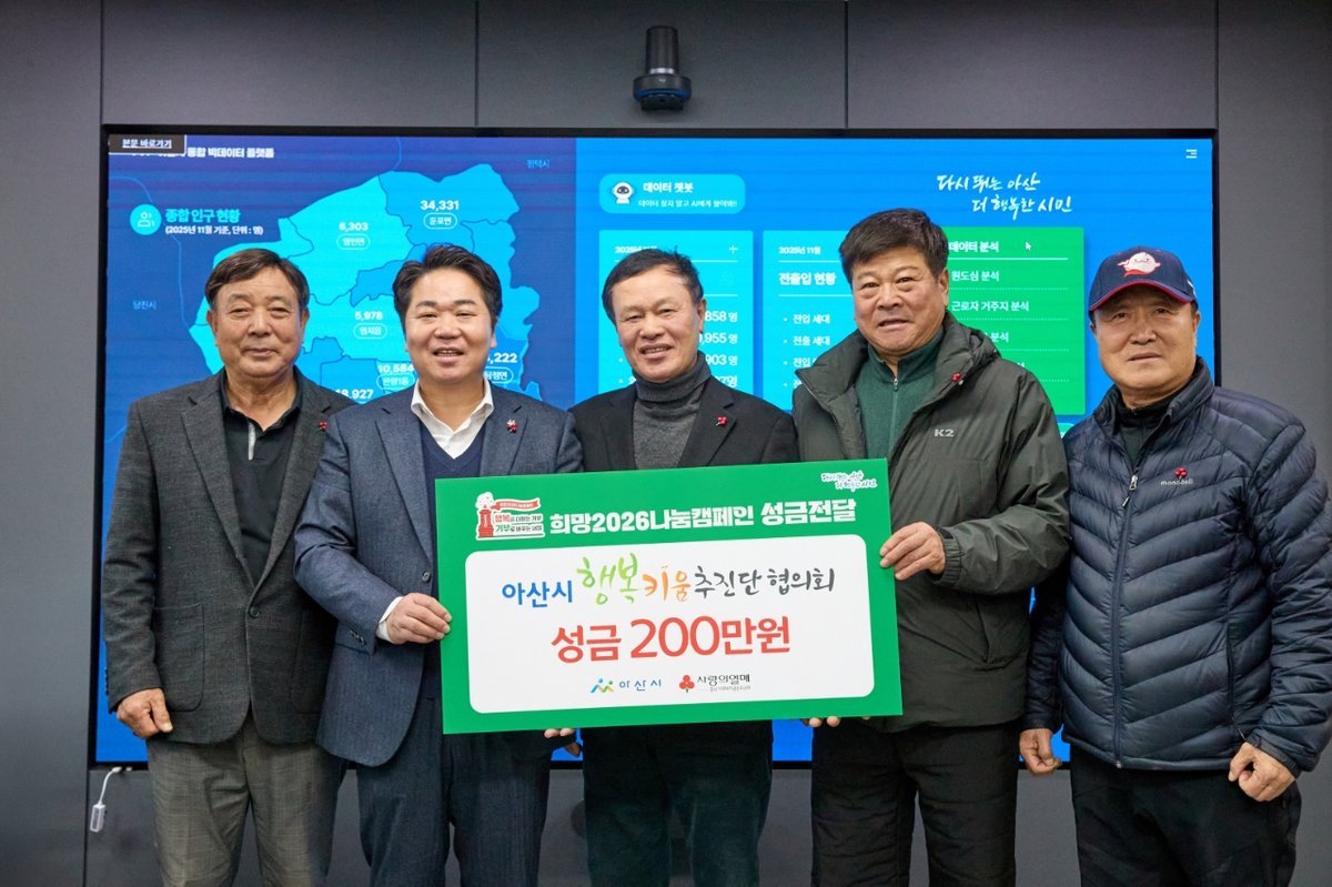 [충청25시] 아산시 행복키움추진단협의회가 16일 아산시를 방문해 ‘희망2026나눔캠페인’성금 200만 원을 기탁했다.