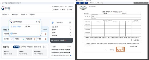 또한, 국토교통부는 공동주택 공시가격에 대한 공적 확인서인 공동주택가격 확인서를 「정부24+」를 통해 ’25년 12월 18일부터 무료로 발급하는 서비스를 전국적으로 실시한다.