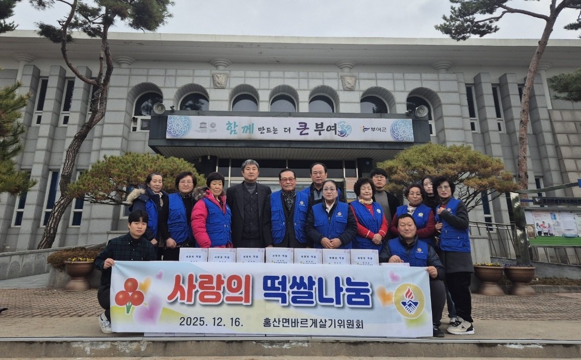 [충청25시] 홍산면은 연말을 맞아 홍산면 바르게살기위원회에서 떡살 50박스를 기탁했다고 18일 밝혔다.