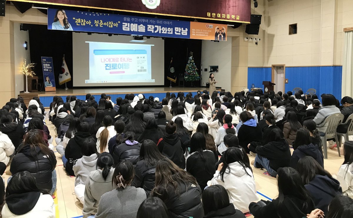 태안군에 따르면, 태안군립중앙도서관은 지난 17일 ‘괜찮아, 청춘이잖아’및 ‘문학작가 어떻게 되었을까’등의 저자 김예솔 작가를 초청, 태안중학교와 태안여자중학교에서 총 330여 명의 학생들을 대상으로 강의를 진행했다.