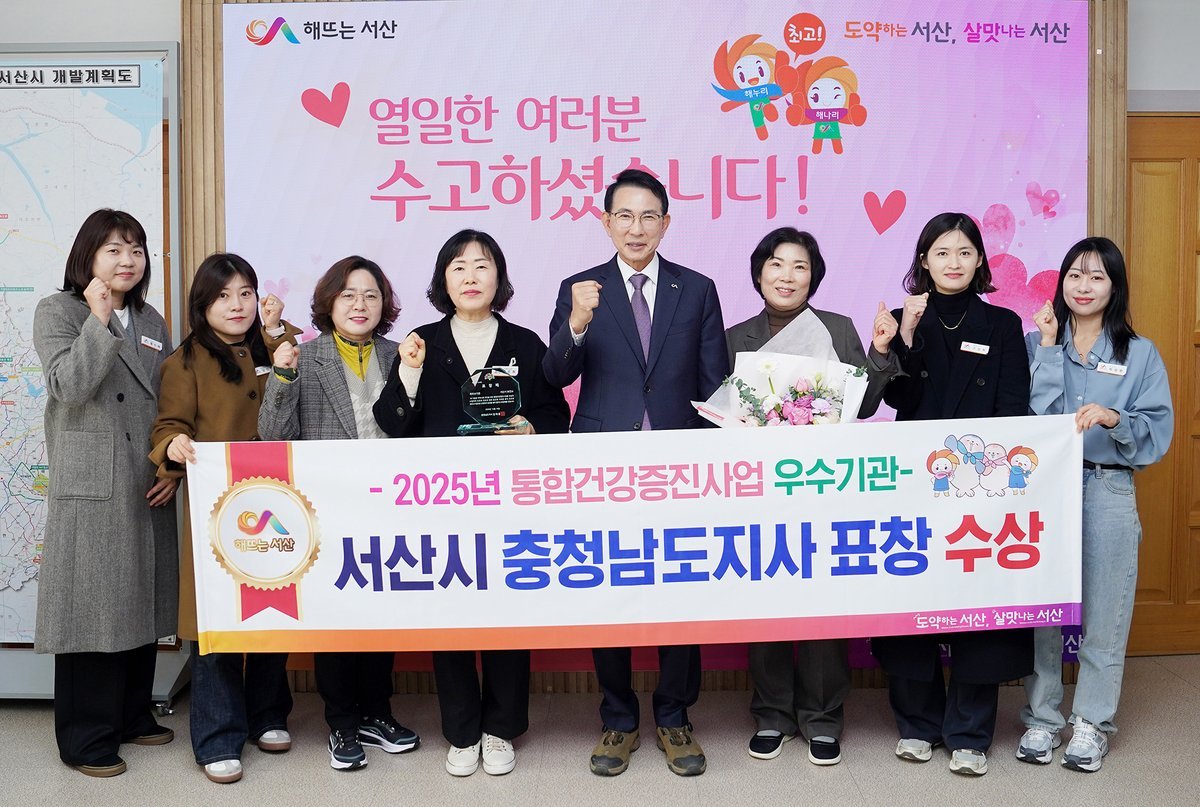 [충청25시] 충남 서산시는 2025년 통합건강증진사업 우수기관으로 선정돼 충청남도지사 표창을 받았다고 밝혔다.