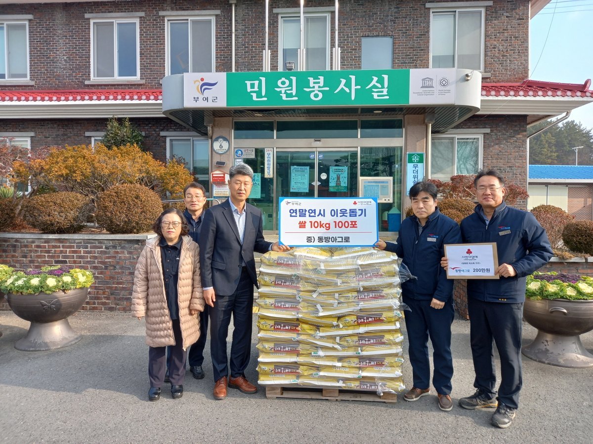 이날 벽룡영농조합에서는 쌀 120포를 기탁했으며, 동방아그로에서도 쌀 100포를 전달했다.