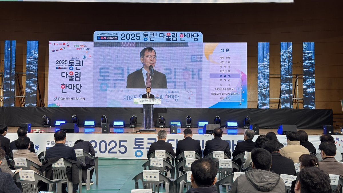 [충청25시] 아산교육지원청 은 12월 18일 선문대학교 아산캠퍼스 체육관에서 학생, 교원, 학부모, 지역 주민 등 교육공동체가 참여한 가운데, ‘2025 교육발전특구 연계 모두가 어울리는 통큰 다울림 한마당 ’을 성황리에 개최했다.