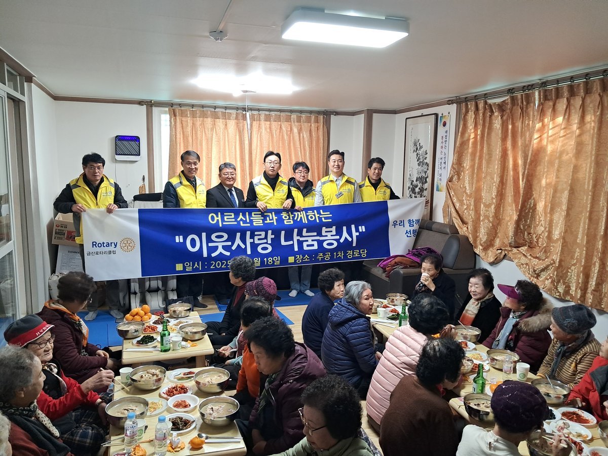 [충청25시] 금산로타리클럽은 지난 18일 금산읍 상9리 주공아파트경로당에서 지역 어르신들을 위한 점심 식사 봉사활동을 진행했다.