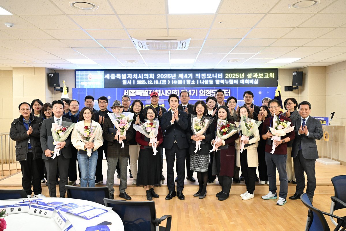 [충청25시] 세종특별자치시의회는 19일, 나성동 복합커뮤니티센터에서 ‘2025년 제4기 의정모니터 성과보고회’를 개최하고, 한 해 동안의 의정모니터 활동 성과를 공유했다.