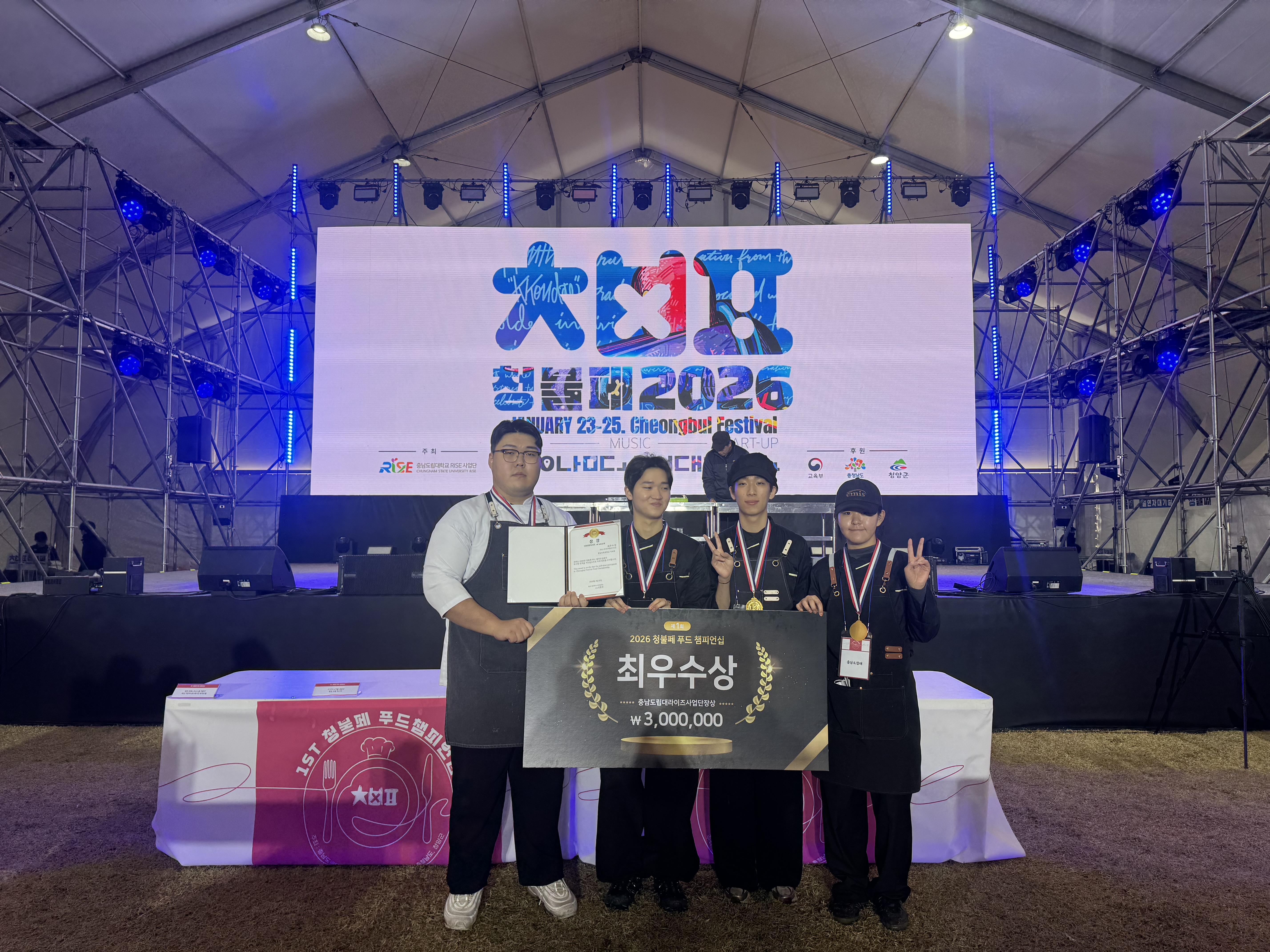 충남도립대학교 호텔조리제빵학과 학생들이 제1회 청불페 요리 챔피언십에서 최우수상을 수상하며, 실전 중심 교육의 성과를 다시 한번 입증했다.