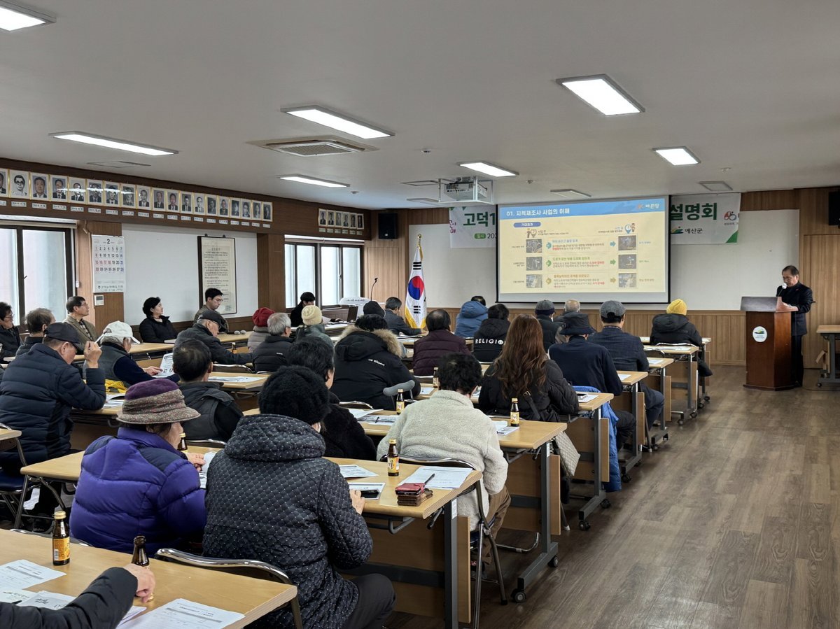 [충청25시] 예산군은 2026년 ‘고덕1지구’지적재조사사업을 원활히 추진하기 위해 지난 4일 고덕면행정복지센터 회의실에서 토지소유자와 이해관계인을 대상으로 주민설명회를 개최했다.