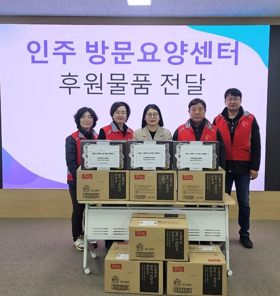 [충청25시] 인주면 행복키움추진단은 2월 10일 인주방문요양센터로부터 관내 저소득 어르신을 위한 김 세트를 후원받았다.