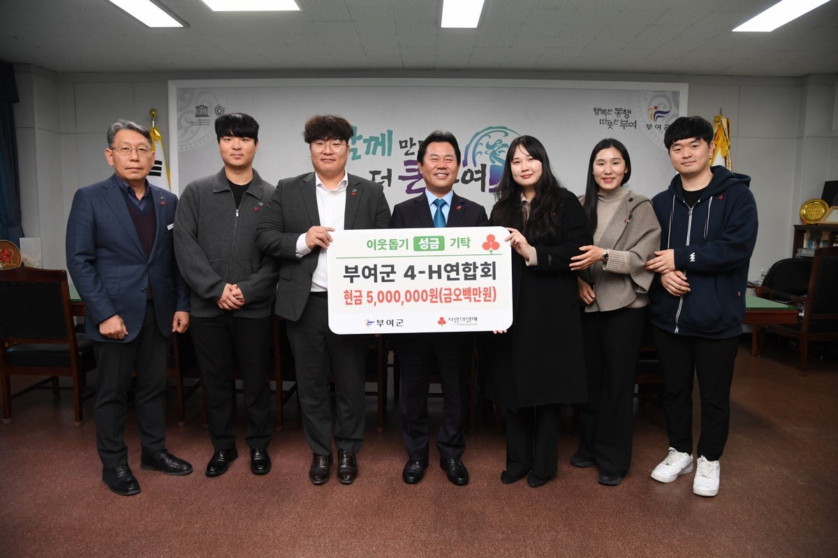 [충청25시] 부여군 농업의 미래를 이끌어가는 청년 농업인 학습단체인 부여군 4-H 연합회가 연말을 맞아 어려운 이웃을 위한 이웃돕기 성금 500만 원을 기탁했다고 2일 밝혔다.