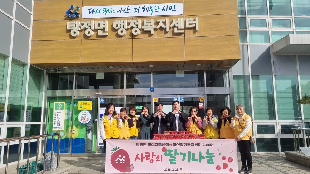 [충청25시] 아산시 탕정면은 26일 탕정면 행정복지센터에서 탕정면 적십자봉사회와 아산딸기도치팜이 함께하는 사랑의 딸기나눔 행사 를 개최했다.