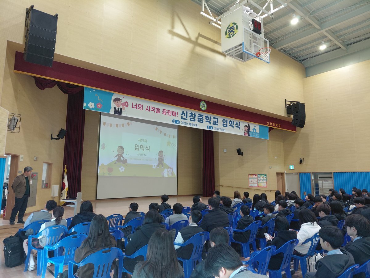 [충청25시] 신창중학교는 3월 신학기를 맞아 2026년 3월 3일 신창관에서 1학년 신입생들을 대상으로 입학식을 개최했다.