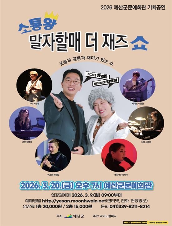 [충청25시] 예산군은 오는 3월 20일 저녁 7시 문예회관 공연장에서 ‘소통왕 말자할매 더 재즈 쇼’토크 콘서트를 개최한다고 밝혔다.