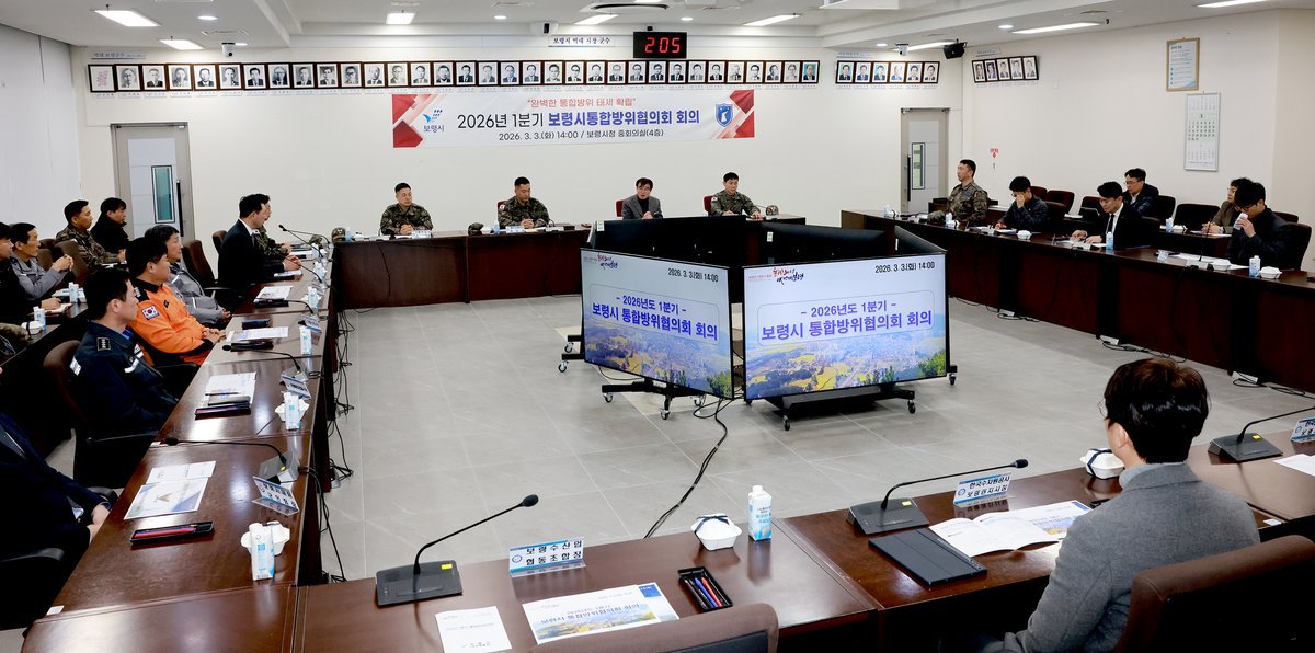 [충청25시] 보령시 통합방위협의회는 지난 3일 시청 중회의실에서 위원 및 관계자 40여 명이 참석한 가운데 2026년 1분기 통합방위협의회를 개최했다.