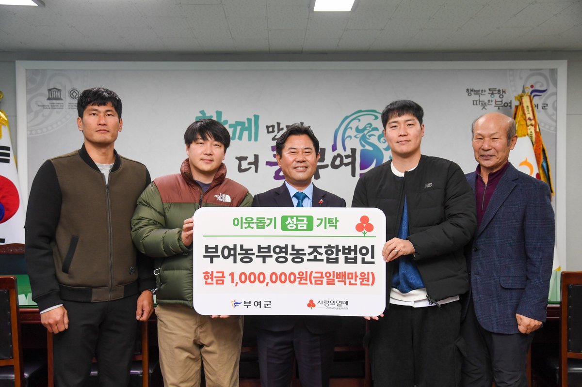 [충청25시] 부여 농부영농조합법인은 부여군청을 방문해 이웃돕기 성금 100만 원을 기부했다.