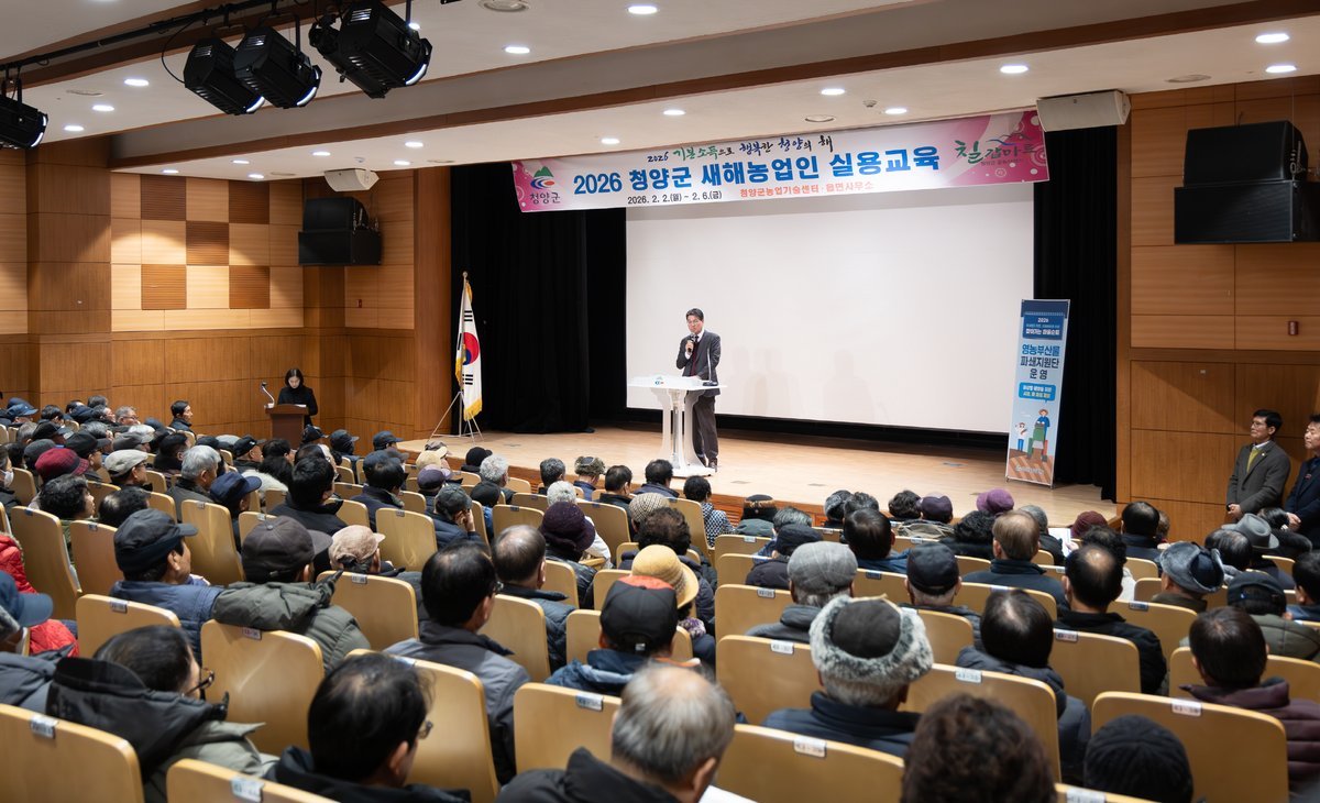 [충청25시] 청양군이 농업의 스마트화와 지역 브랜드 가치 제고를 위해 추진한 ‘2026년 새해농업인 실용교육’이 농업인들의 뜨거운 호응 속에 마무리 됐다.