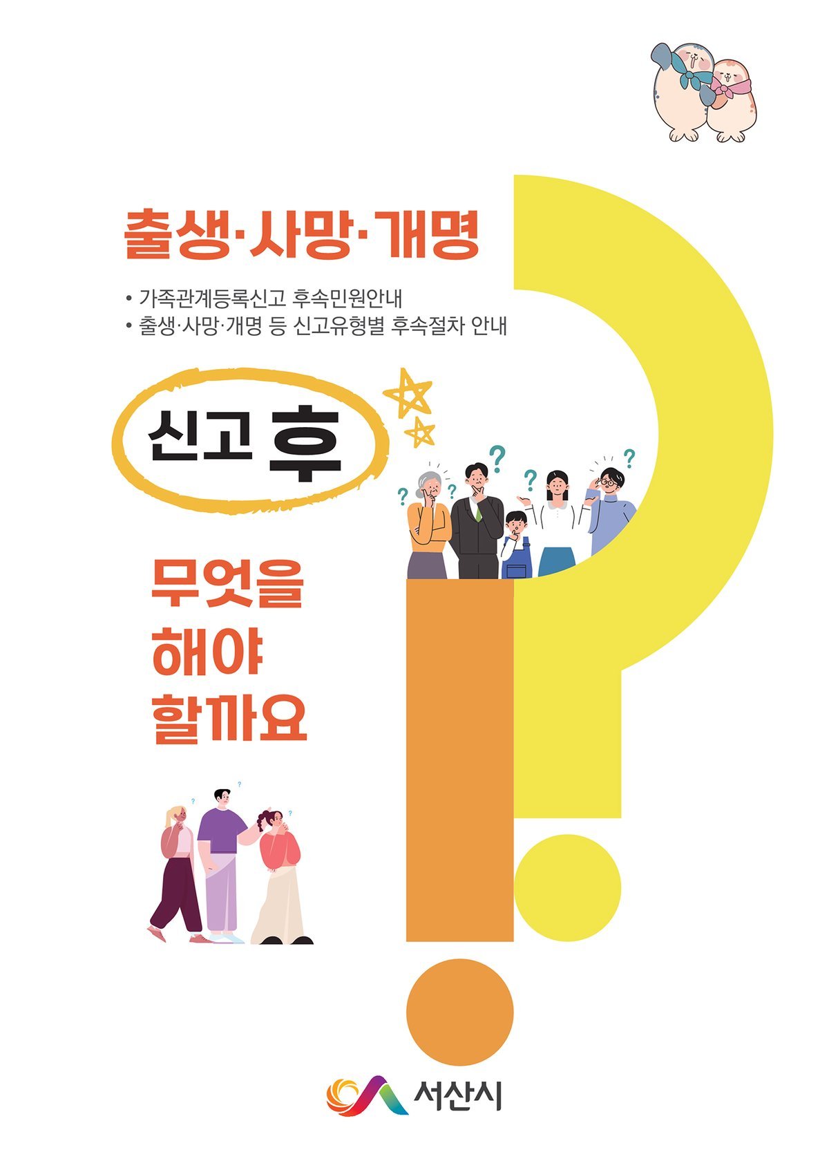 [충청25시] 충남 서산시는 가족관계등록신고에 대한 후속민원을 한눈에 알아볼 수 있도록 ‘출생 사망 개명 신고 후 무엇을 해야 할까요?’책자를 발간했다고 밝혔다.