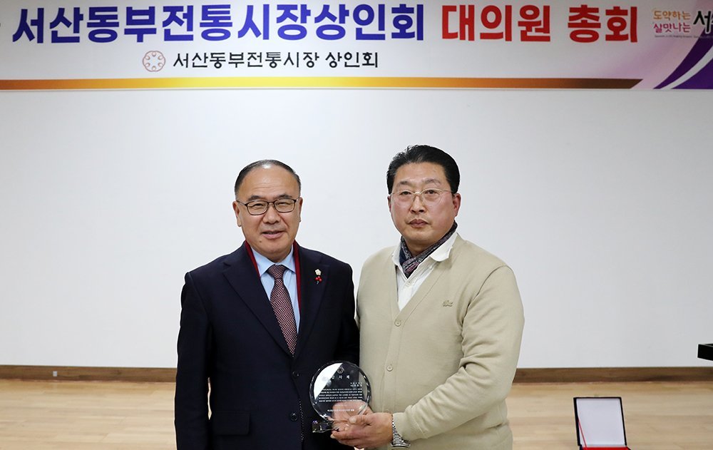 [충청25시] 서산시의회 조동식 의장이 지난 26일 서산동부전통시장 상인회 대의원 총회에서 서산동부전통시장상인회로부터 감사패를 받았다.