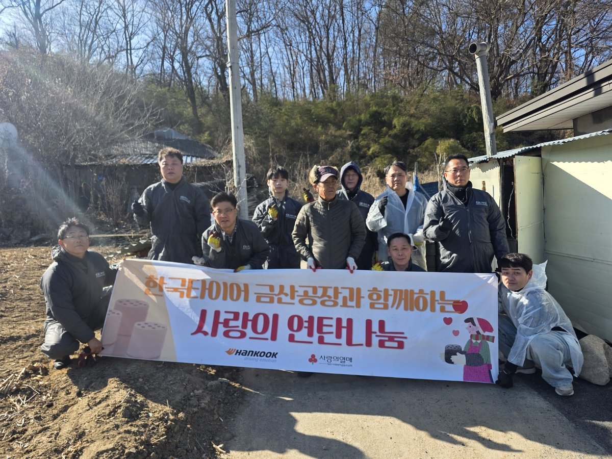 [충청25시] 한국타이어 나눔회는 지난 7일 금산군 제원면 저소득층 가구에 연탄 300장을 전달하며 온기를 전했다.