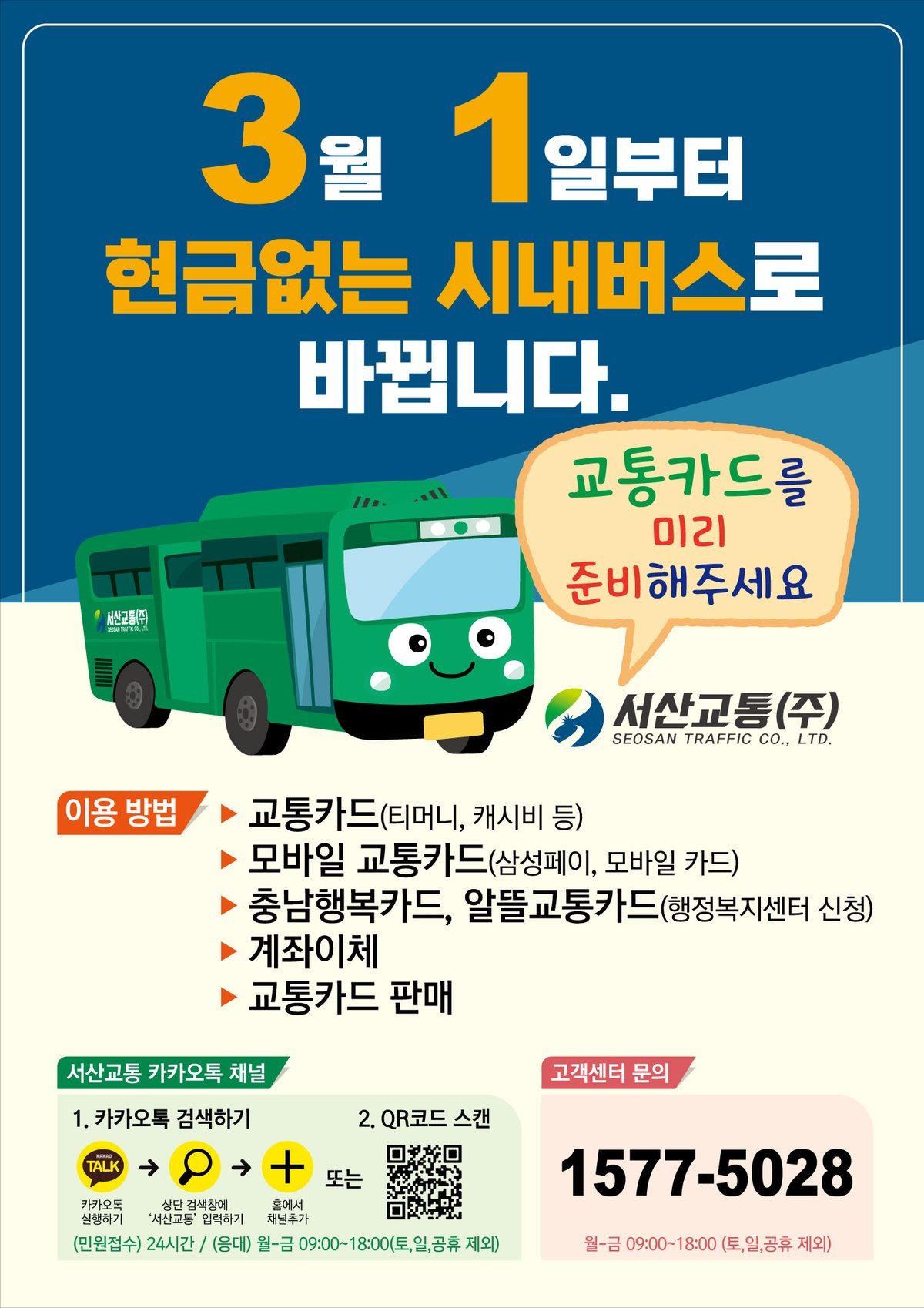 [충청25시] 충남 서산시는 오는 3월 1일부터 관내 시내버스 모든 노선이 ‘현금 없는 버스’로 운영된다고 밝혔다.