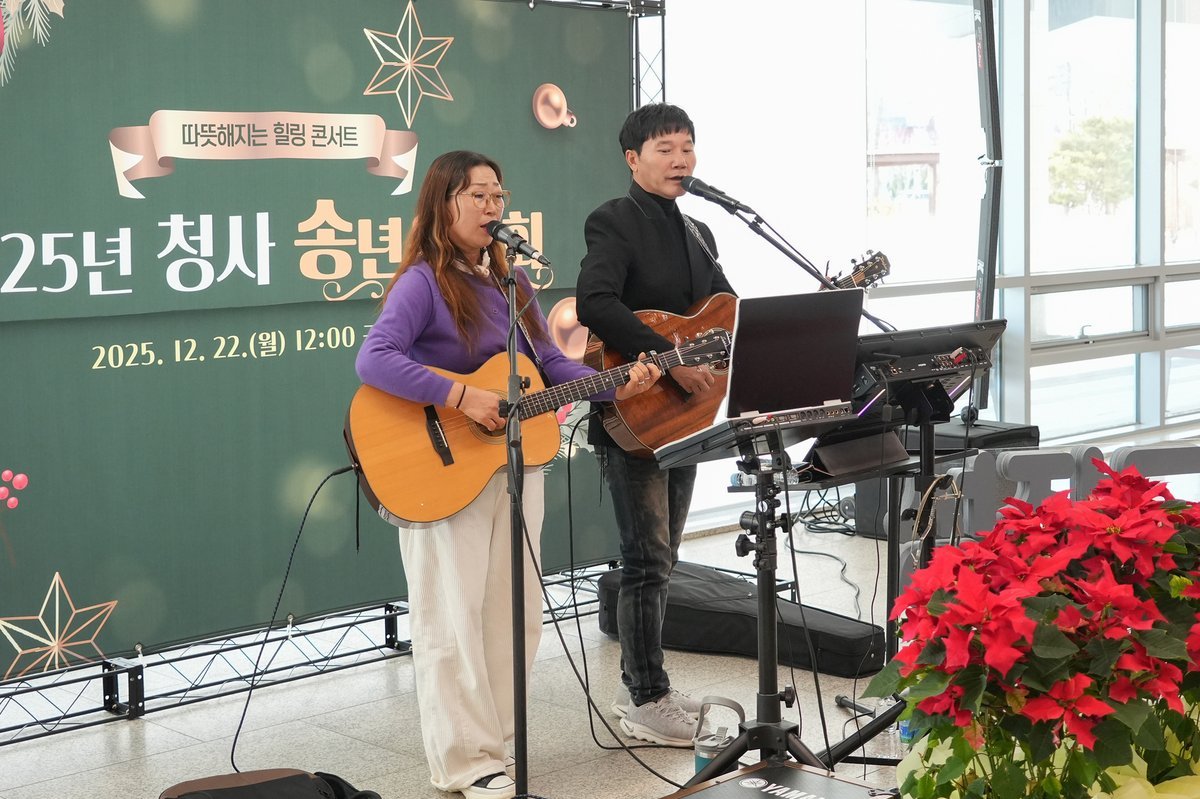 [충청25시] 서천군은 지난 22일 군청사 로비에서 ‘2025년 청사 송년 음악회’를 개최하고, 군민과 직원들에게 문화 향유의 기회를 제공했다.
