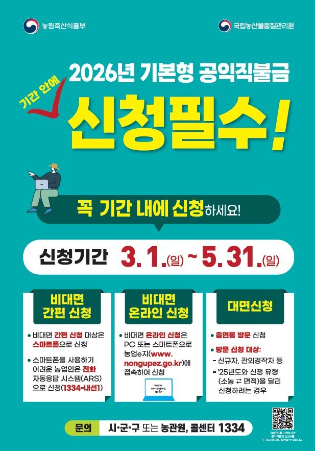 금산군, 2026년도 기본형 공익직접지불금 접수