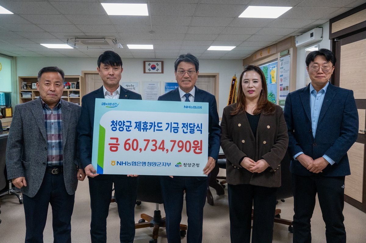 [충청25시] 청양군은 NH농협은행 청양군지부로부터 지난해 제휴카드 사용으로 발생한 적립 기금 6073만원을 전달받았다고 6일 밝혔다.